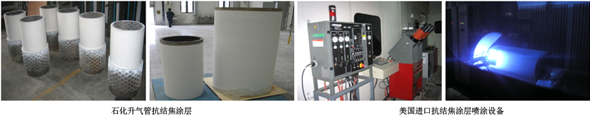 七二五所自主研發(fā)的抗結焦涂層是具有抑制結焦、抗?jié)B碳、隔熱耐磨等優(yōu)異性能的陶瓷基復合涂層,抗結焦涂層掛片經延遲焦化裝置上的工程化考核證明抑制結焦率達80%以上,是國內唯一已經在石化升氣管上獲得實際應用的涂層產品。